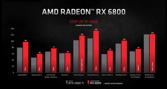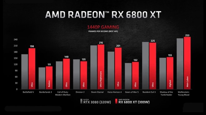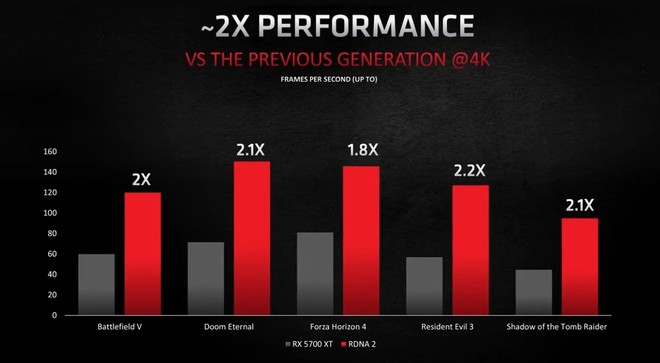 Tutte queste ottimizzazioni permettono alle GPU AMD di nuova generazione di offrire prestazioni fino a 2,2 volte quelle della top di gamma Radeon RX 5000, ossia la Radeon RX 5700XT.
