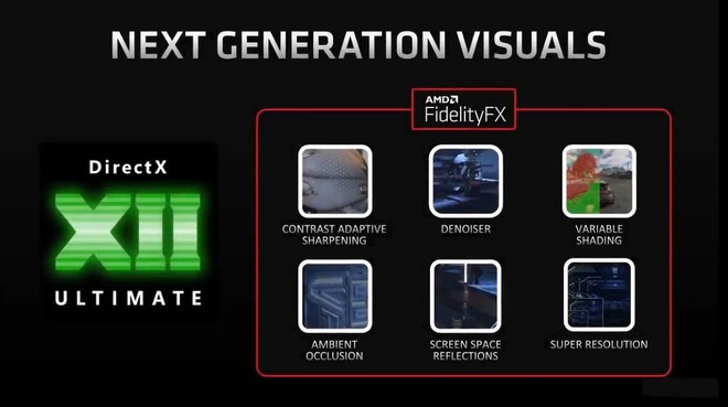Le Radeon RX 6000 supportano ovviamente le Direct XII Ultimate e quindi DirectX RayTracing (DXR) e il Variable Rate Shading (VRS) , senza dimenticare il supporto per AMD FidelityFX, un toolkit per gli sviluppatori che permetterà di migliorare ulteriormente gli effetti nei giochi grazie anche a una sorta di render ibrido. Non dimentichiamo infine che le GPU Navi con RDNA2 supportano anche la decodifica AV1.