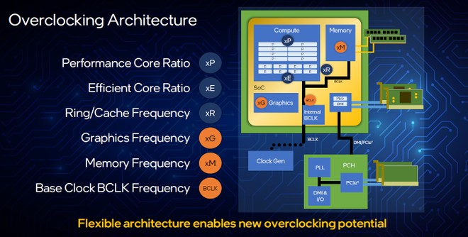 Intel Alder Lake-S non guarda però solo a prestazioni ed efficienza e, confermando la leadership dell’azienda in quanto ad innovazione, introduce nuovi standard per le memorie e il reparto I/O. Abbiamo già anticipato del debutto delle prime RAM DDR5 ma altrettanto importante risulta l’introduzione dell’interfaccia PCI-E 5.0, che amplia di molto le capacità di espansione e la versatilità dell’intera piattaforma, garantendo tra l’altro di raddoppiare la larghezza di banda rispetto all’attuale PCI-E 4.0 (32 vs 16 GT/s). Al momento sul mercato mancano periferiche compatibili, SSD in primis, ma i primi prototipi fanno ben sperare